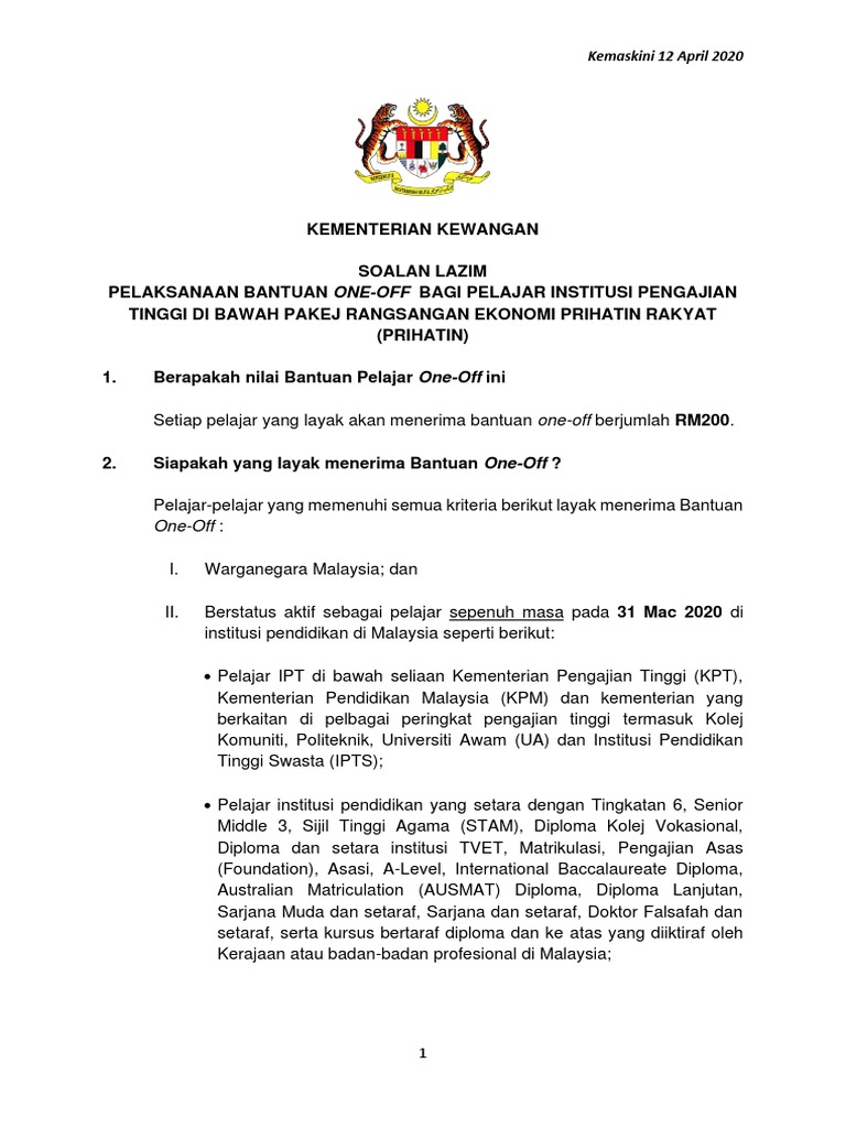 Bantuan Prihatin Nasional Kepada Pelajar Ipt Tingkatan Enam Diploma Dan Setara