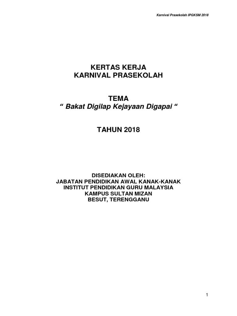 Kertas Kerja Karnival Prasekolah Pdf
